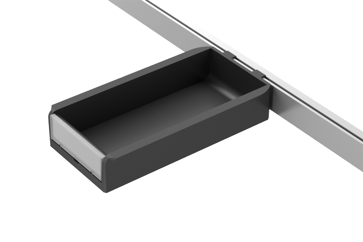 These bins can be easily clipped into profile slots or mounting profiles.
