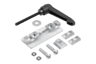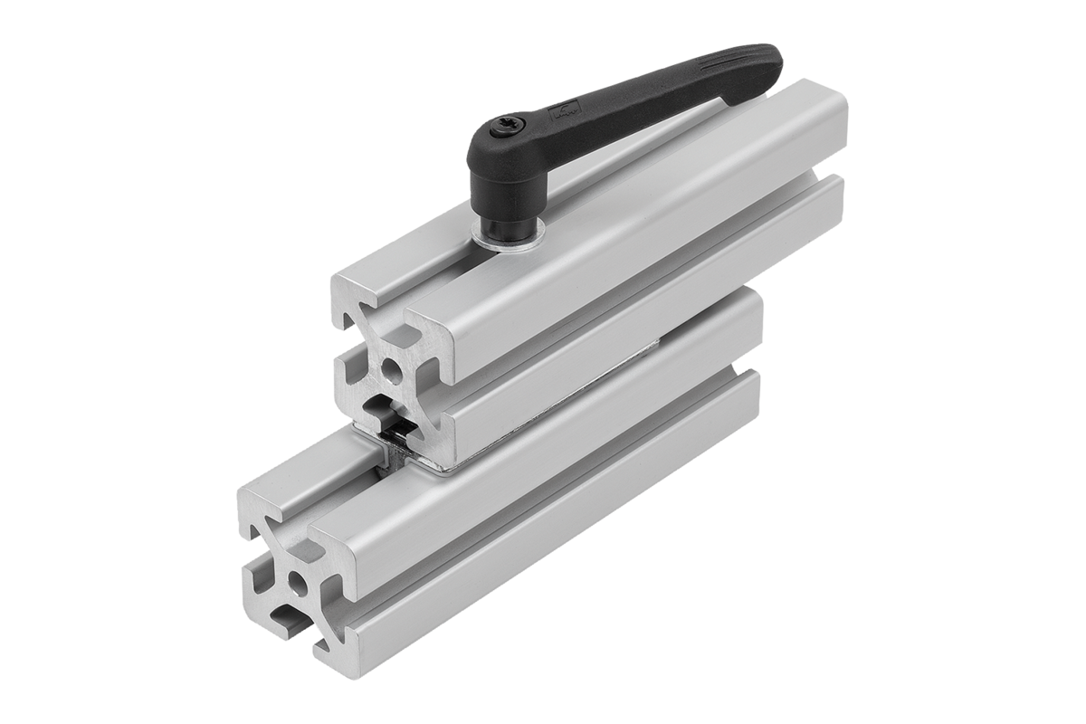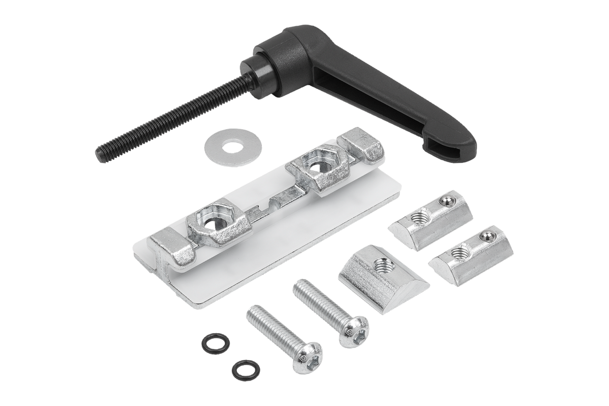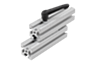 Metal profile slider with clipped-on plastic slide element. With an additional clamping lever for clamping the carriage system. Profile sliders enable low-wear linear movement of type I aluminium profiles with 8 mm slots. The absence of lubrication makes the system extremely insensitive to dirt.