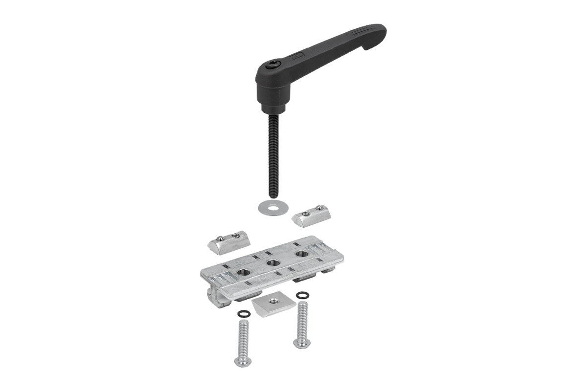 1x M6x55 clamping lever with DIN 9021 6.4 mm washer and special M6 slot key for 8 mm slots.