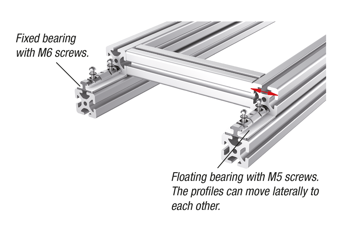Slide guides with several slide carriages must be designed as a combination of fixed bearing (Form F) and floating bearing (Form L). This compensates for form tolerances and ensures light movement.