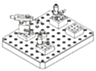 Riser blocks are used to achieve a certain support height. The additional tapped holes in the risers are for mounting further fixture elements.