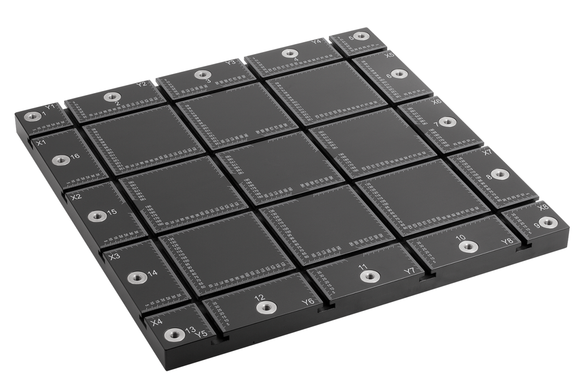 Baseplates with T-slot and connecting thread. With scaling for exact and repeatable positioning of clamping elements.