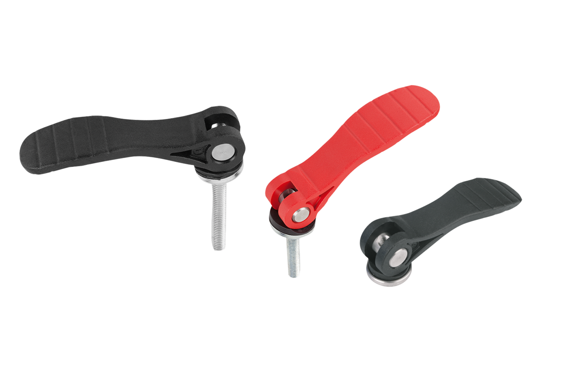 Cam levers plastic, with external thread, plastic-metal thrust washer and steel or stainless steel stud