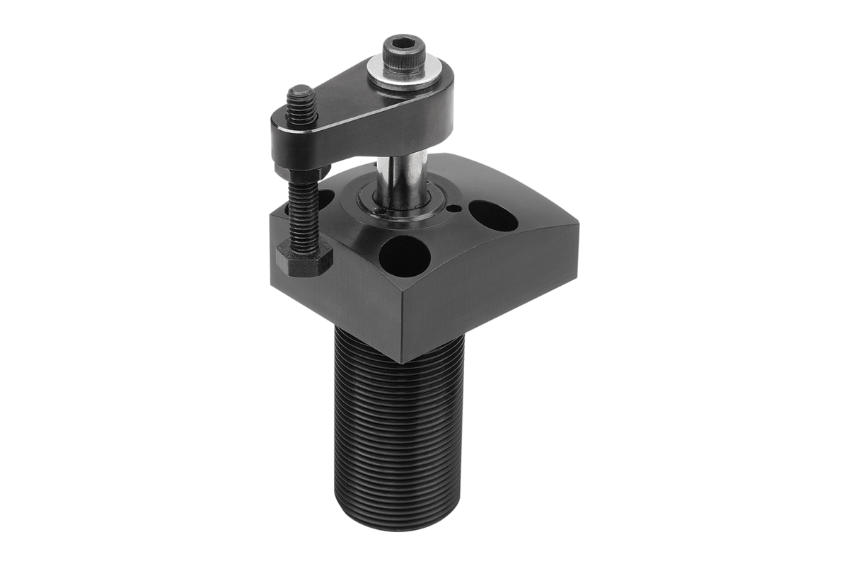 2. The installation of the clamping arms is normally carried out when the clamp is not under pressure. After the clamping arm is positioned on the piston rod, the screw or nut can be tightened. However, if an exact clamping position of the clamping arm is required, the piston of the swing clamp must be retracted under pressure. The clamping arm can then be mounted in the desired position.