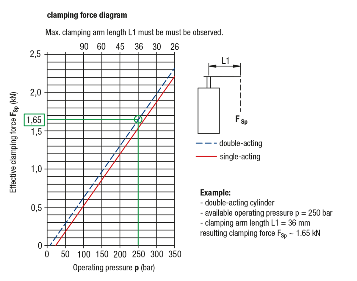 The clamping force diagrams for the swing clamps are decisive for the dimensioning of the clamping arms.