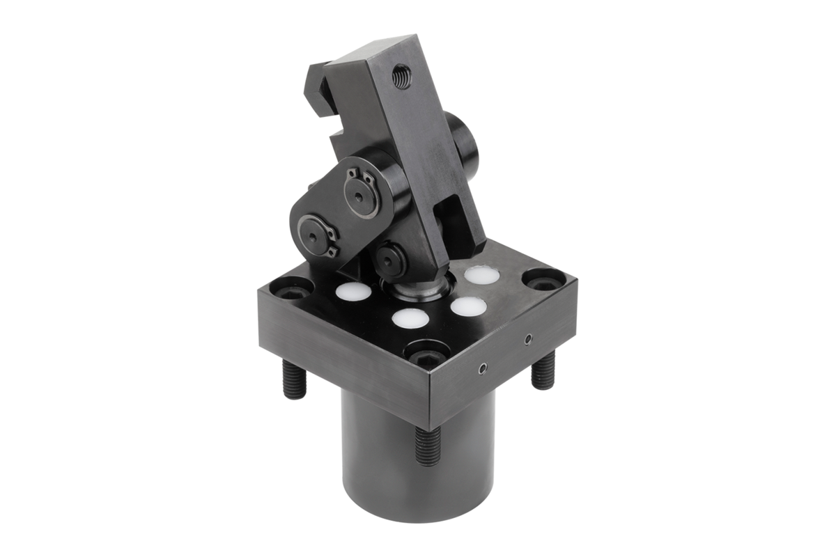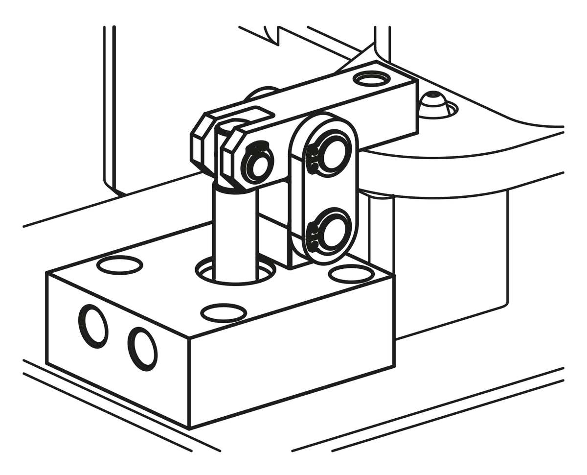 Link clamps are the optimal choice when, due to the clamping situation, the workpiece needs to be freely removed from above when unclamped. Due to the linear movement of the clamping lever when opening or closing the link clamp, it is particularly suitable for clamping situations where a lateral movement of the clamping element is not possible, e.g. due to interfering contours. The force is transferred to the tensioning lever of the link clamp via the piston. The opening and closing times are clearly defined due to the link clamps double-acting mode of operation.