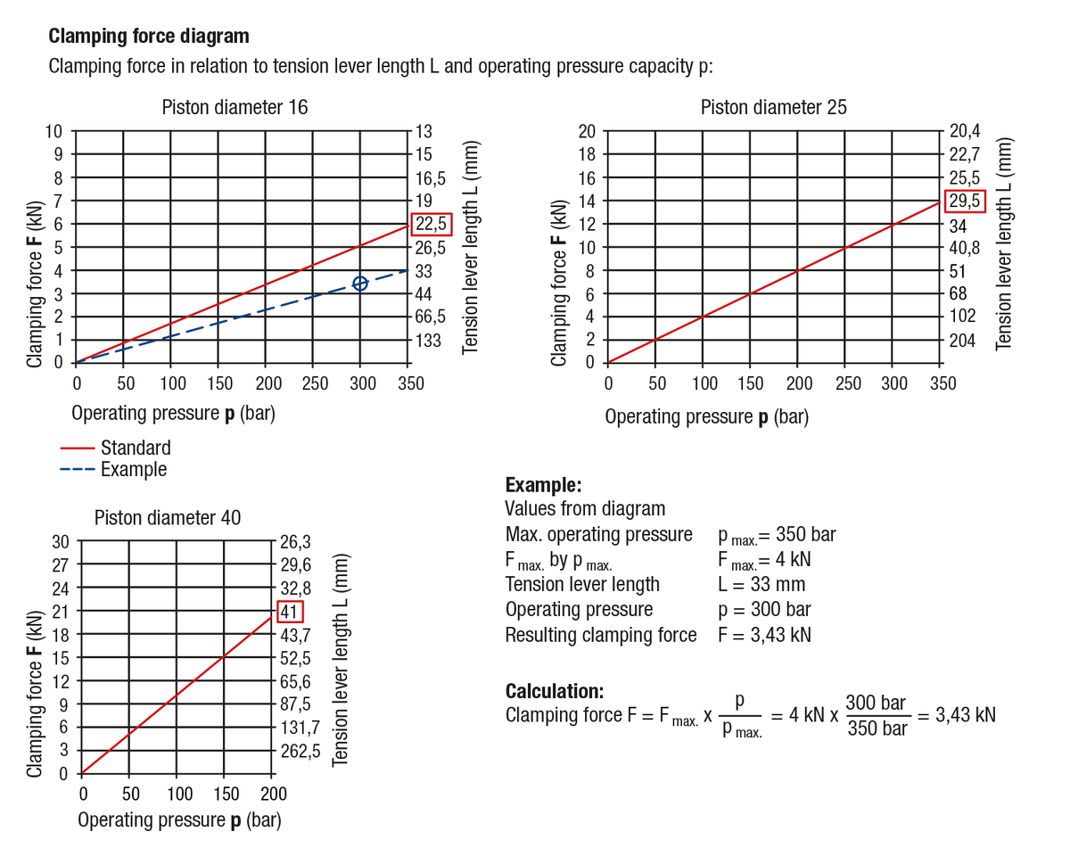 - Max. operating pressure for piston diameters 16 and 25: 350 bar.