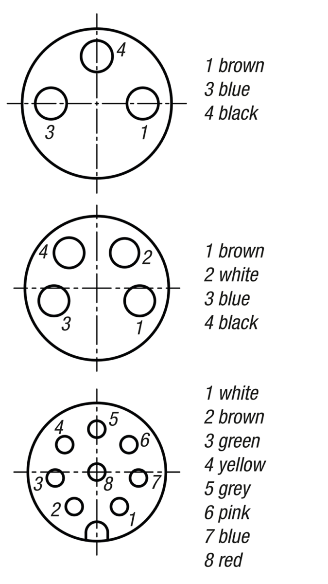 Wire ID acc. to DIN 47100 colour code.