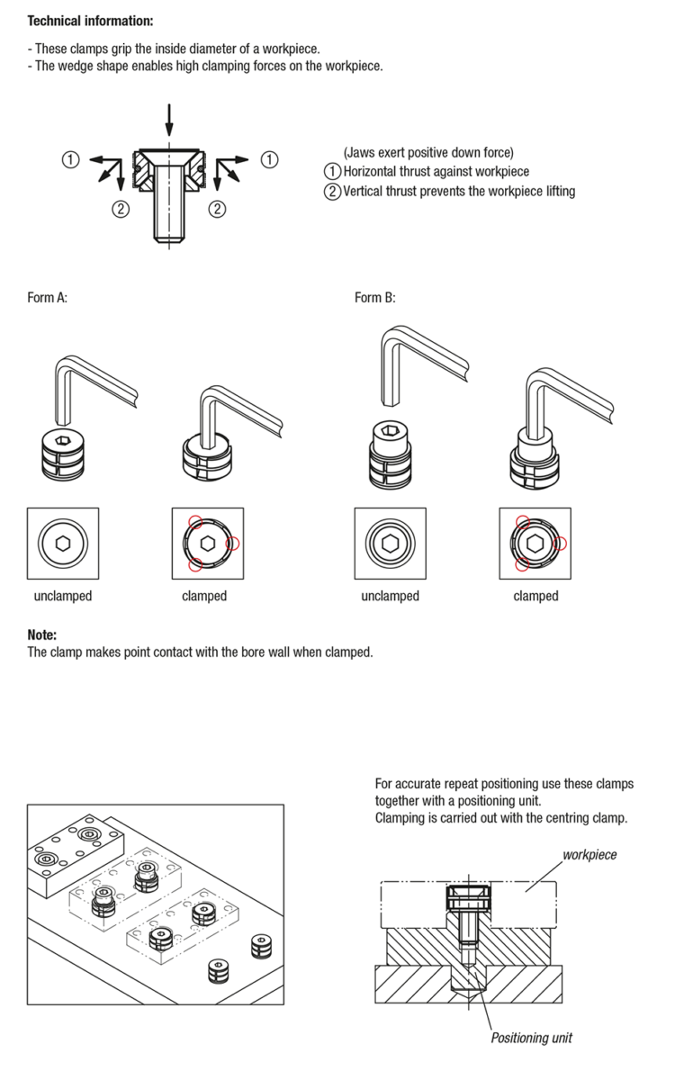 The centring clamp enables a workpiece to be centred and clamped in the bore.