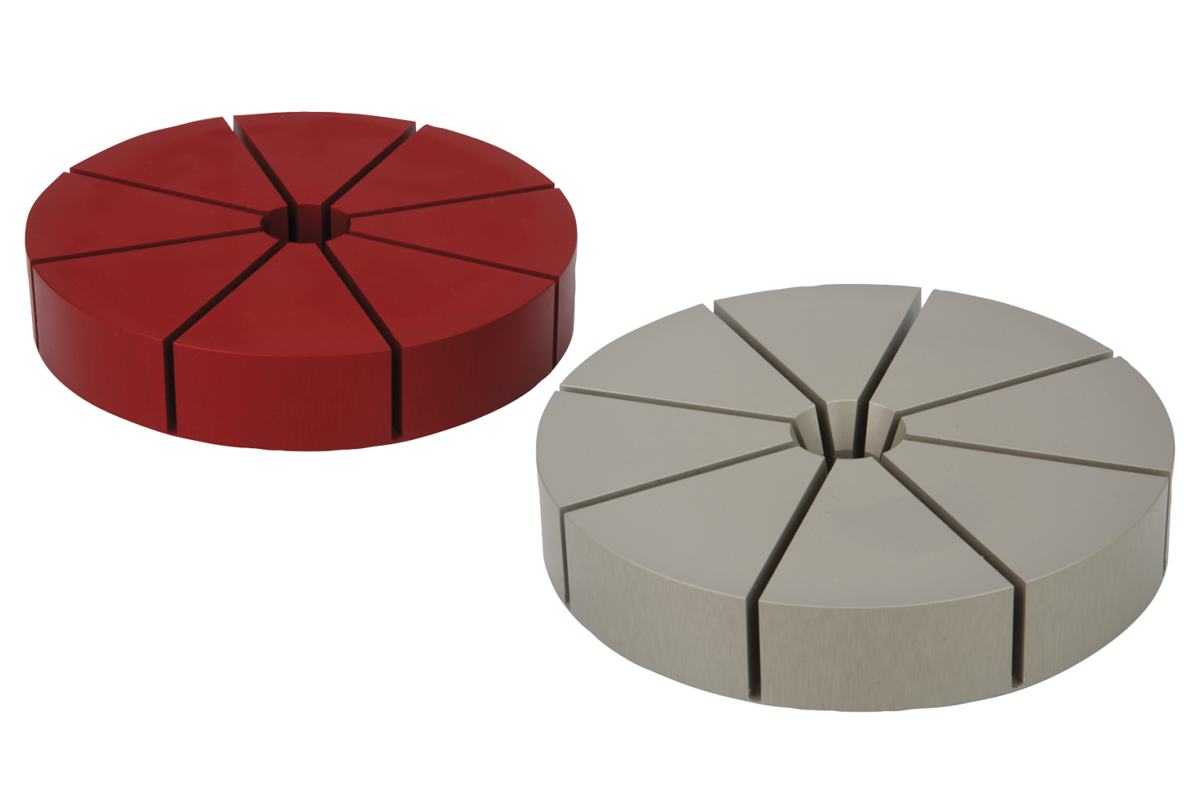 High-strength aluminium, red (external clamping) or clear (internal clamping), anodised.