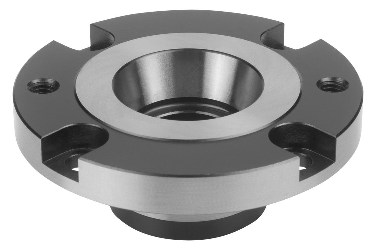 The locating bushes are centred in a reamed hole and then fastened with 4 screws.