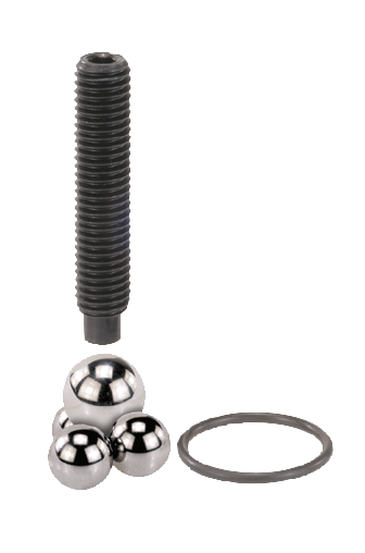 Repair kit comprising setscrew, o-ring and 4-piece ball set.