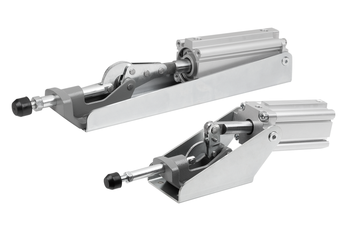 The pneumatic clamp can be used as a push and pull clamp. The heavy-duty design and the dual-acting FESTO pneumatic cylinder guarantee a long life.