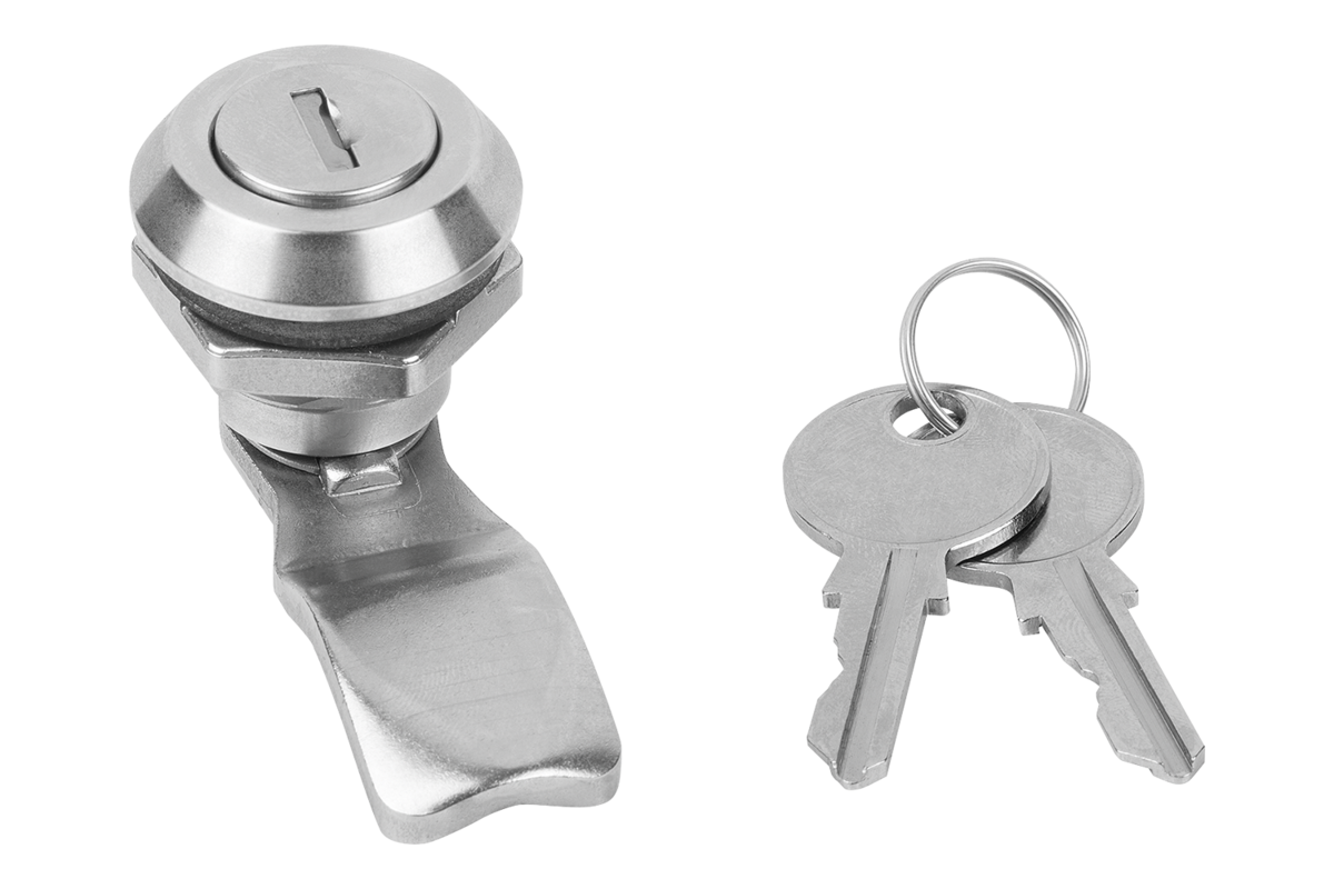 The quarter turn lock can be installed pre-assembled. Housing with fastening nut and plate cylinder, same key locking, incl. 2 keys (lock type 1333).