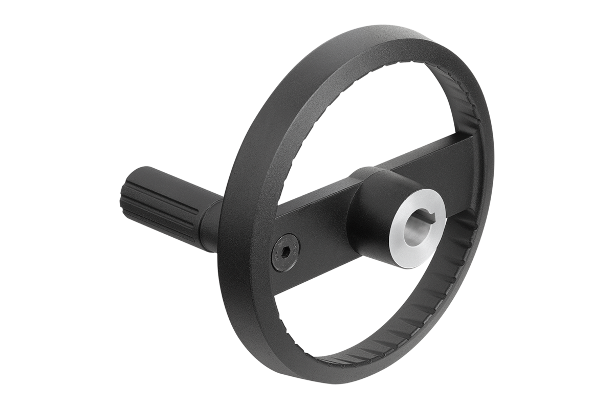 The handwheels can be secured to a shaft using a transverse pin or by parallel key connection together with a DIN 6912 cap screw and a handwheel washer 07375.
