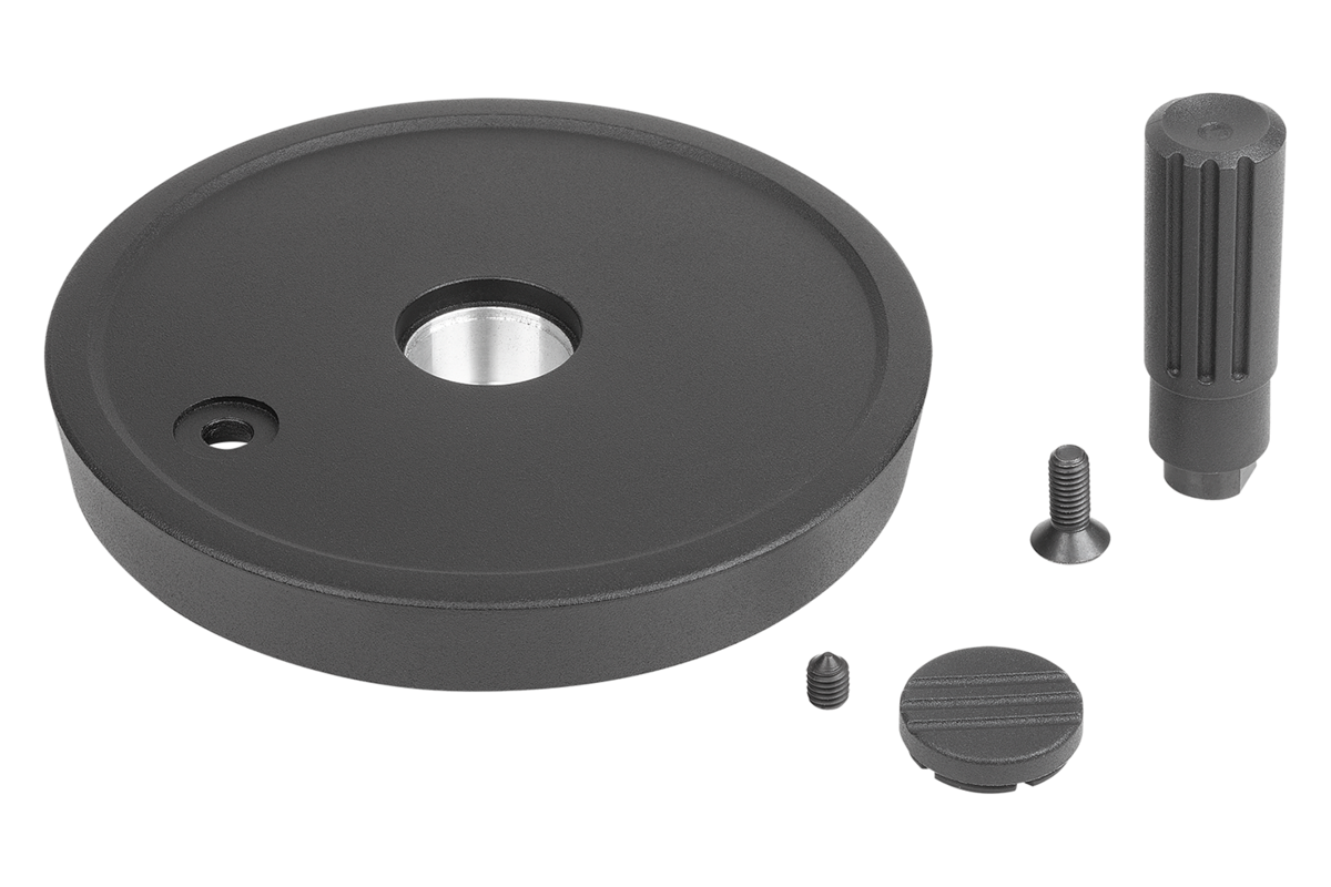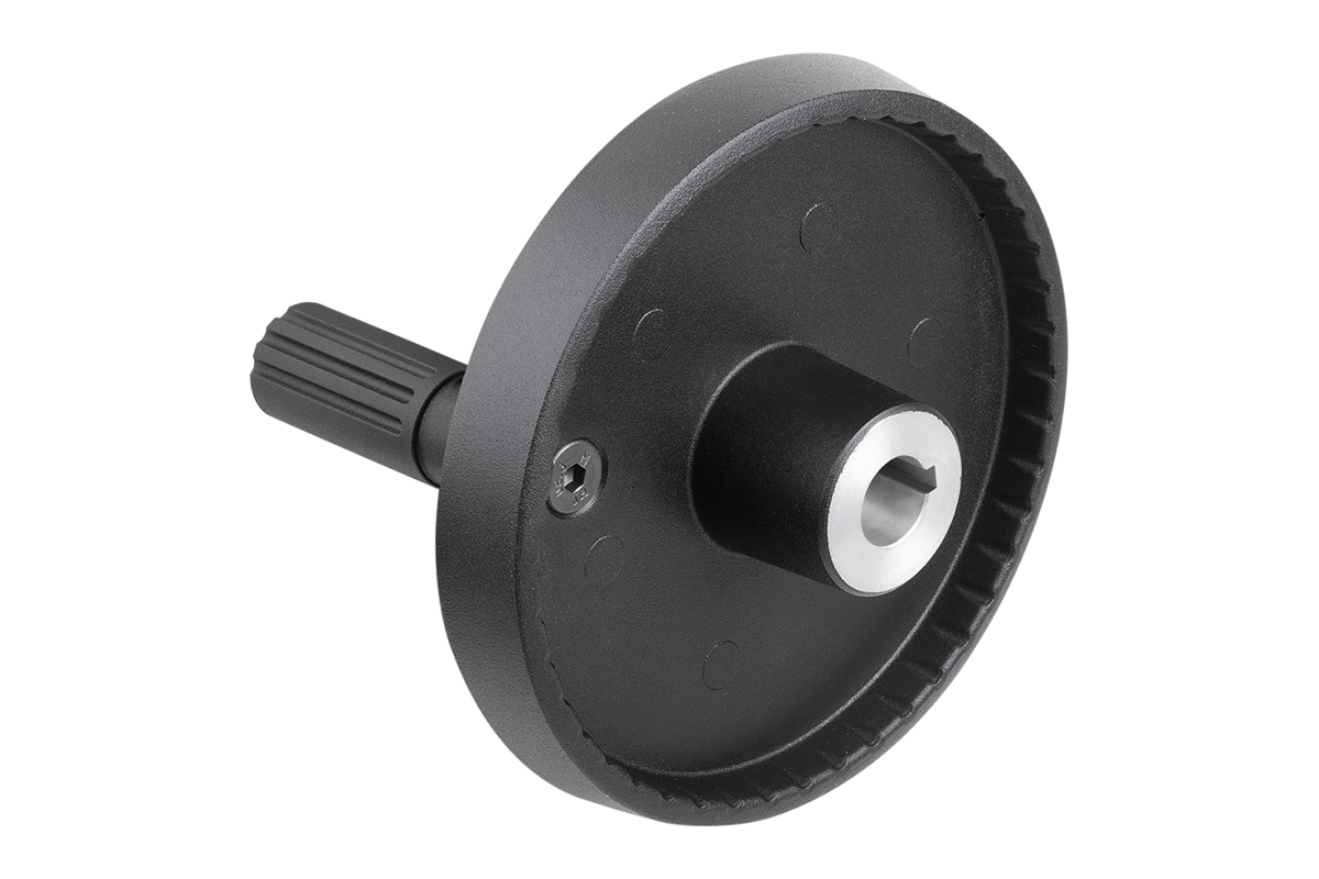 The handwheels can be secured to a shaft using a transverse pin or by parallel key connection together with a DIN 6912 cap screw and a handwheel washer 07375.