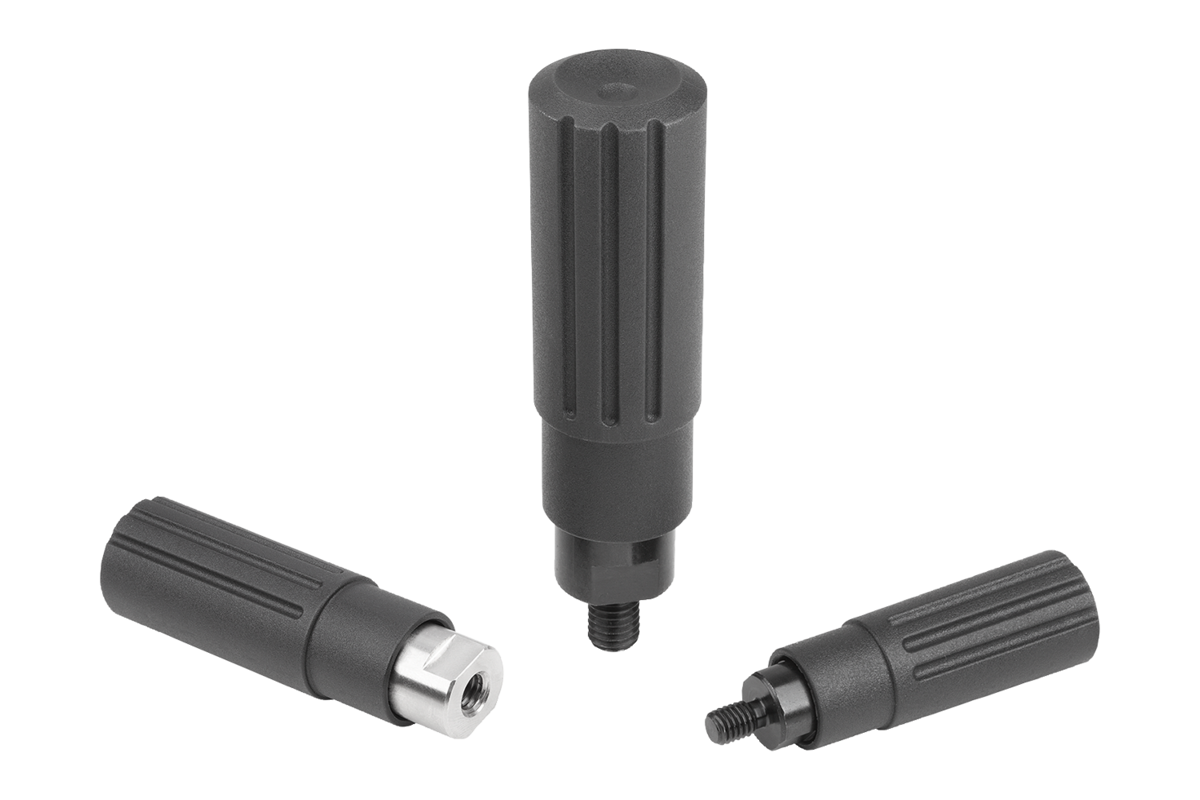 Cylindrical grips are supplied assembled and can be screwed onto handwheels, crank handles, etc.