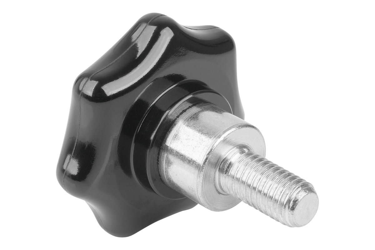The thermoset star grip is distinguished by its closed grip contour. The contact surface of the protruding steel bush is vertical to the thread axis and ensures a firm screw connection.