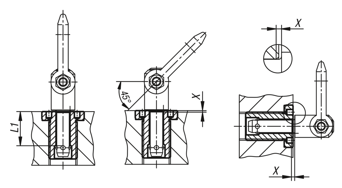 The locating bushes offer a safe and quick option for holding the ball lifting pins. They ensure that installation in a range of supporting materials can be carried out easily and reliably. Can also be used with thin-walled parts and blind holes.