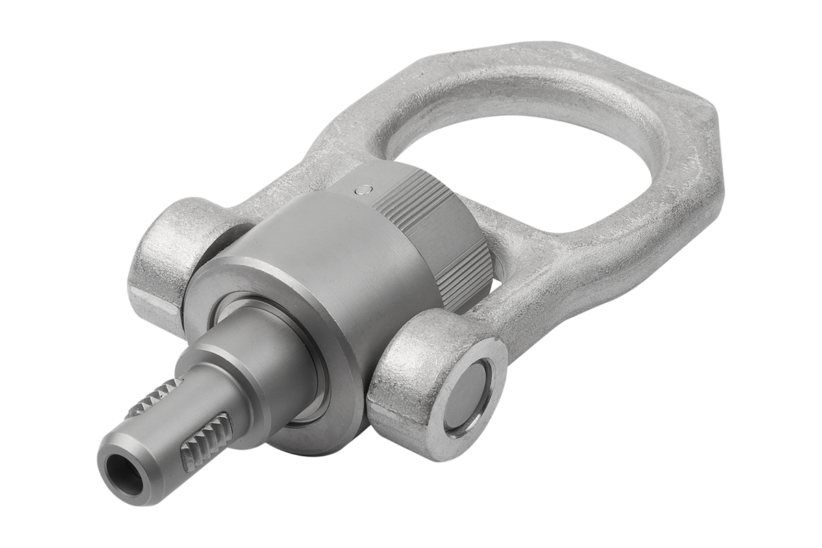 The swivelling and rotating shackle always aligns itself in the direction of pull when lifting, without the pin rotating. The safety strap on the shackle prevents the push-button being unintentionally pressed during linear tension.