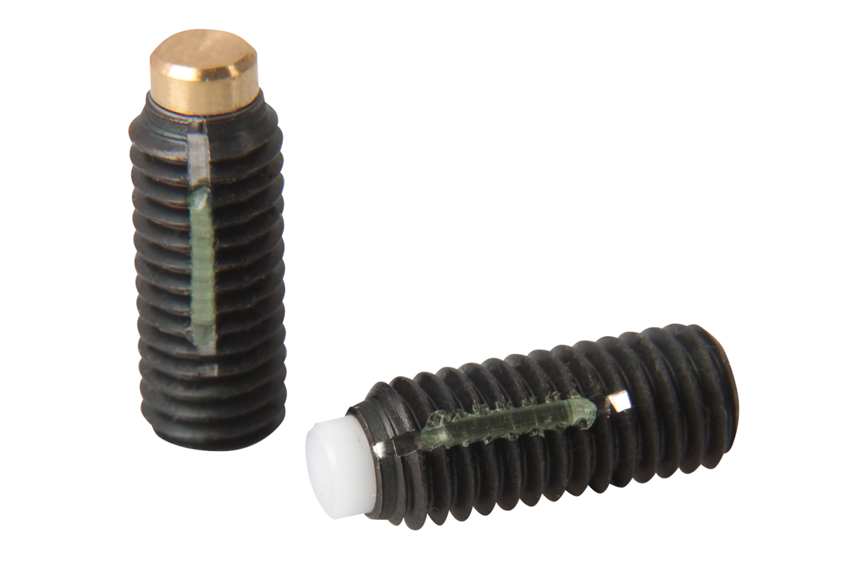 Thrust screws are ideal for clamping or exerting pressure on threaded spindles, axles, shafts and treated surfaces without marring.