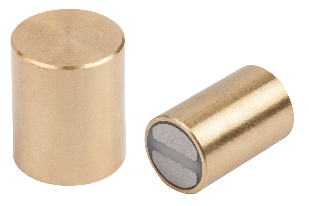 Smooth design, shielded system. Diameter “D” ground with h6 tolerance. Under no circumstances may SmCo magnets be pressed directly into iron, loss of attractive force due to magnetic short circuits occurs. SmCo magnets are especially suitable for direct use in spot-welding machines, as no demagnetisation occurs.