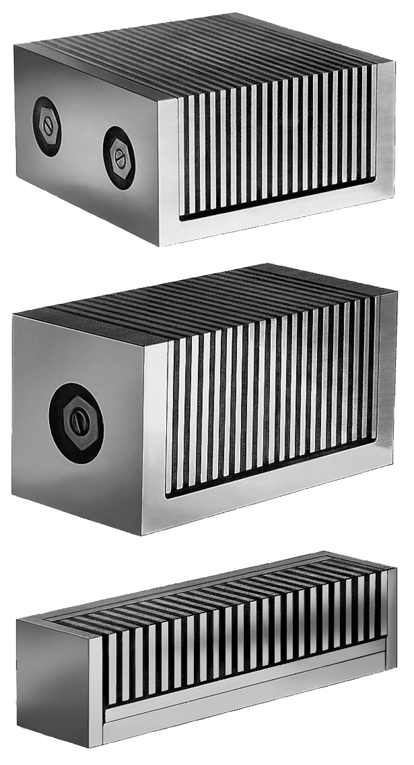 The workholding magnets 09060-2010 to 09060-2030 consist of a permanent magnetic system with fine pole divisions (4 mm) which are effective on two or three faces.