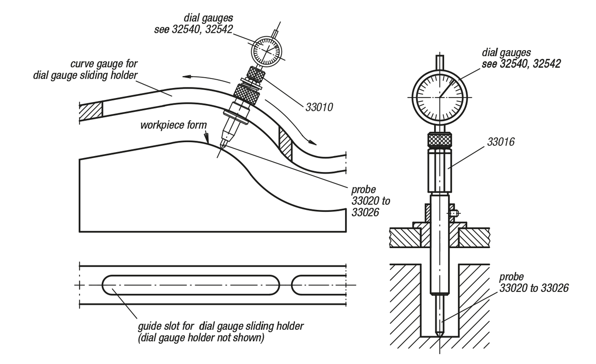 These probes are suitable for dial gauge holders 33010 to 33016.