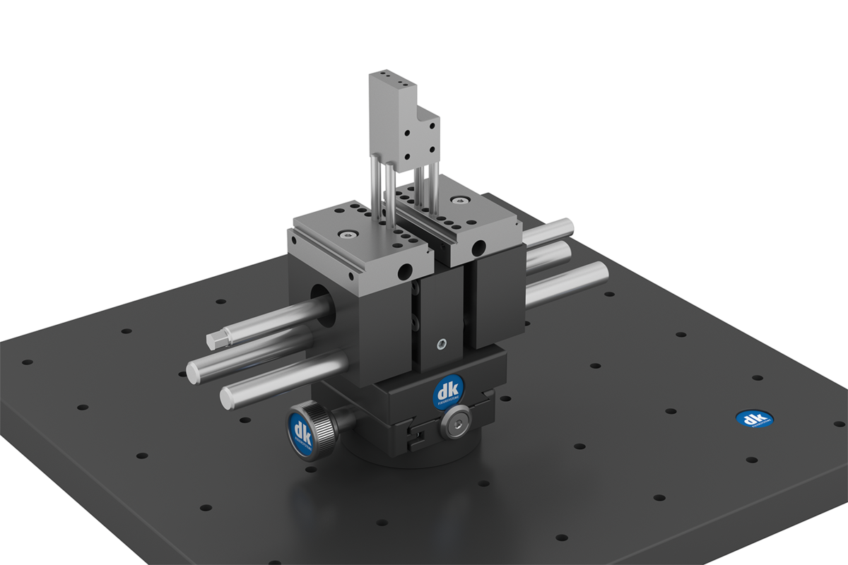 The precision centric vice is a flexible solution for positioning and securing workpieces quickly and easily for measurement on measuring machines. Clamping is carried out via the offset jaws or pins that can be inserted into the jaws. This also enables workpieces with internal bores to be clamped.