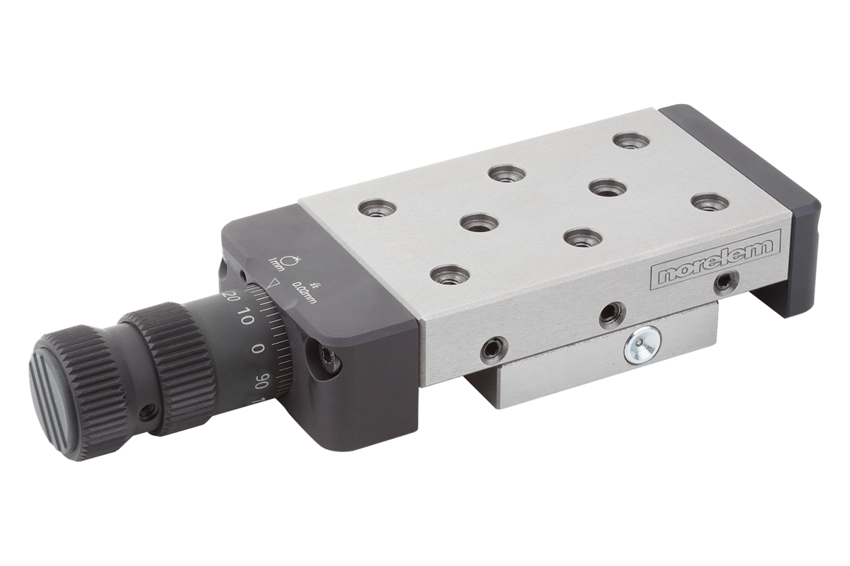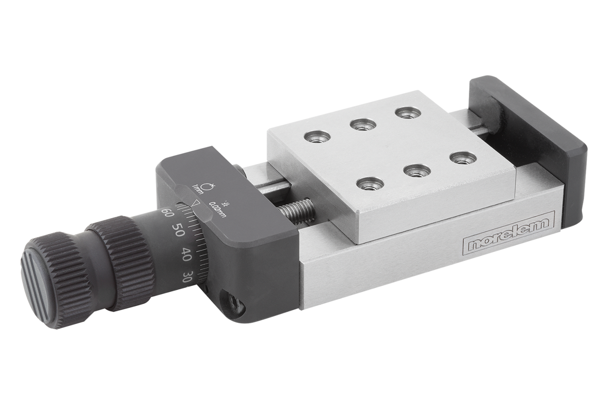 These precise slideways are used in e.g. machine, fixture and metrology equipment construction as well as in the optical and precision engineering industries. The central set screw M1 can be replaced by a clamping lever 06460.