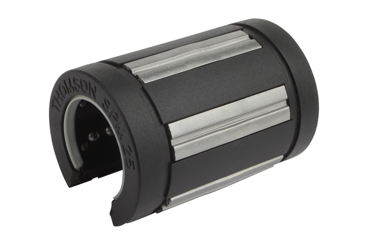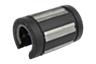 The linear ball bearings correspond to the self-aligning series 3 of ISO 10285. With double-sided seal. These bearings consist of high precision injection moulded plastic housings in which ball bearing steel raceway segments are clipped in. The plastic housing serves simultaneously for recycling and as seal retainer. The seal consists of a special polyamide material with a low coefficient of friction. The bearing is secured with DIN 471/472 circlips.
