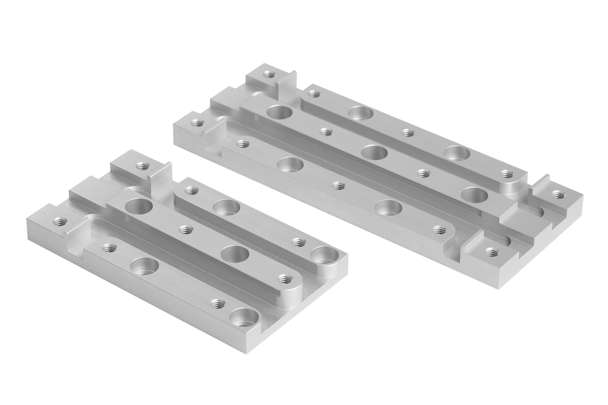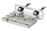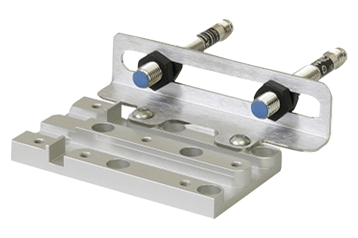 The mounting plate is used for the horizontal mounting of the short or long positioning stages with electric drive. With slots for direct support of inductive proximity switch (20905-005). The proximity switch can be adjusted when the positioning unit is mounted. The threaded holes M4 are used to fasten the sensor holder 21093.