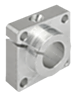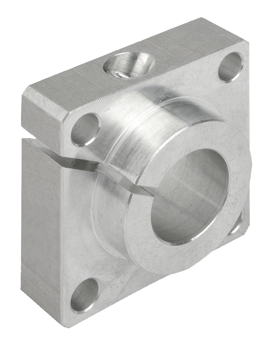 Flanged shaft support with standard bores for easy and secure clamping and fastening the guide shafts.
