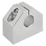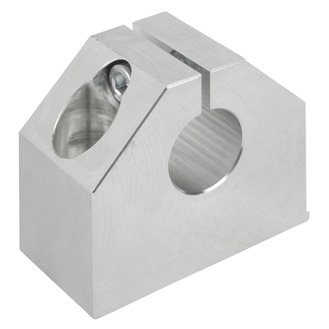 Shaft support with bore for easy and secure clamping and fastening the guide shafts.