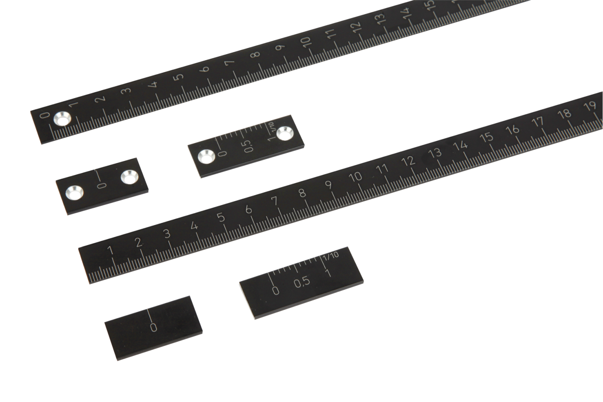 Vernier scale and zero marks, aluminium, self-adhesive or with holes, thickness 2 mm