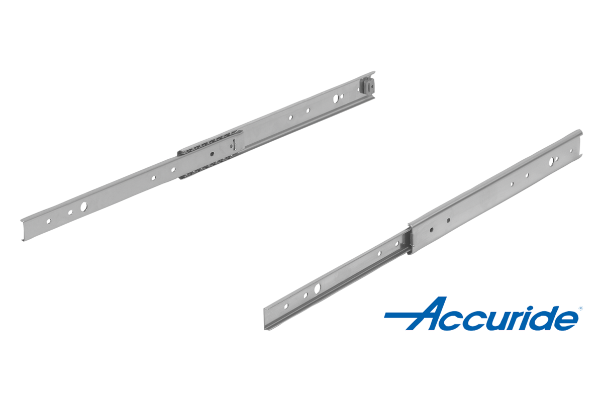 On telescopic slides with partial extension, the travel is less than the installed length. Latches in closed position.