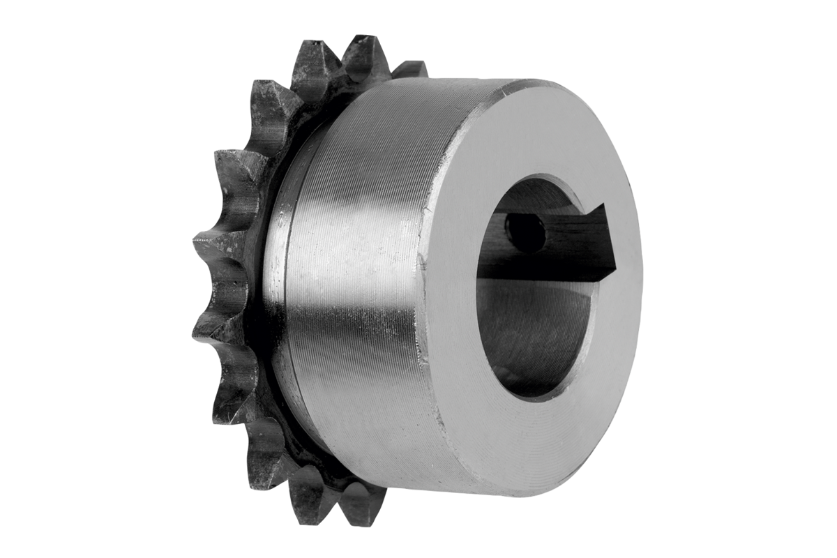 Ready to install sprockets with hub on one side for DIN ISO 606 roller chains. Teeth are milled and inductively hardened.