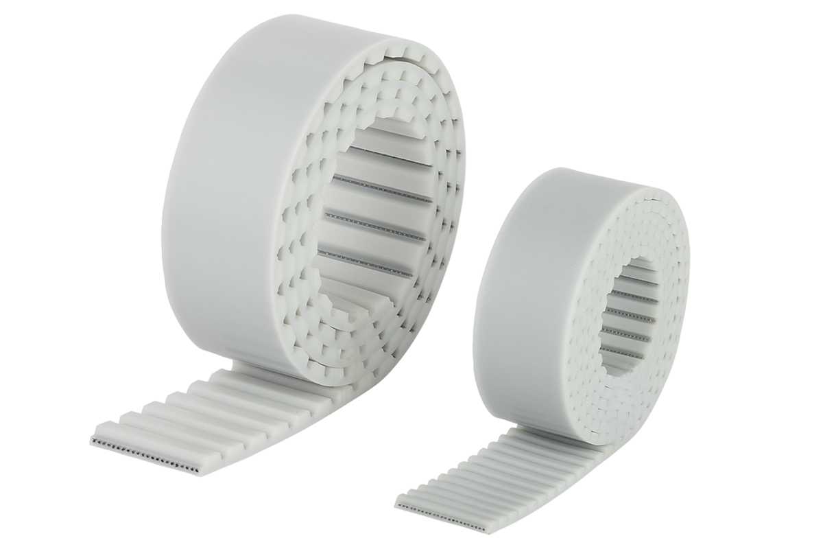 Toothed belt with trapezoidal profile and reinforced steel cord (compared to T-Series). Optimised tooth profile for more uniform force distribution and lower tooth deformation under load. High-performance steel cord reinforcement for high breaking strength and low belt extension. Reduced polygon effect for quieter belt operation. Especially well-suited for linear drives and low power transmission where exact axial and angular positioning are required. Polyurethane belts may be welded. The power transmission rating of welded belts drops by about 50%.