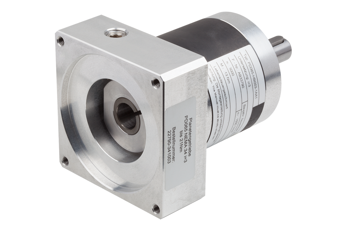 Planetary gearing for stepper motors of the NEMA 23 and NEMA 34 size. Suitable for all mounting positions. Maintenance-free thanks to lifetime lubrication. The planetary gearing is self-centring, equipped with a flange adapter system and axial length compensation.
