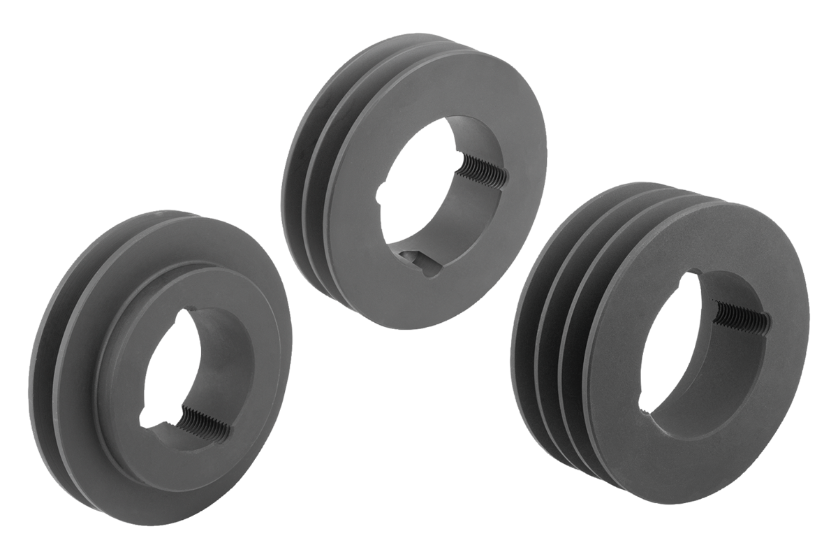 The V-belt pulleys are based on DIN 2211 or DIN 2217. They have a conical bore for taper clamping bushes. The taper clamping bushes must be ordered separately and are available for various shaft diameters.