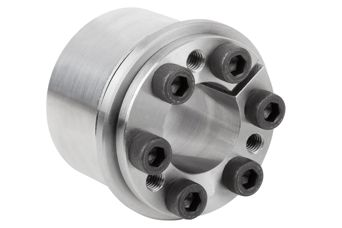 Lightly oil keyless locking coupling on the tapered faces and contact points of the shaft and hub. Do not use MoS2 or grease. Insert keyless locking coupling in the hub seat and slide onto shaft. Tighten screws crosswise in several increments to the defined tightening torque.