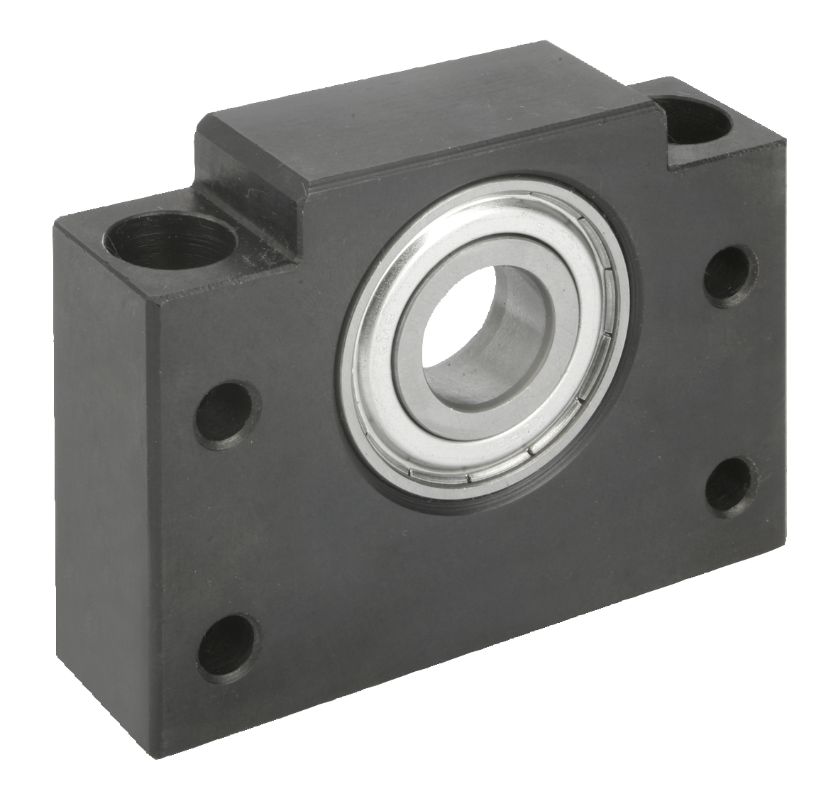 The axis height of the spindle bearings is matched with the fixed bearing unit 24076. The floating bearing units consist of a housing with deep grooved ball bearing which adapts axially to the linear expansion of the spindle.
