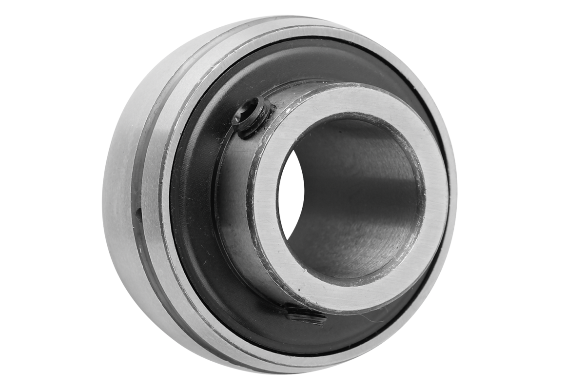 The internal construction of the insert bearings corresponds to that of standard Series 6200 and 6300 radial ball bearing. However, they have wider inner rings for easier fastening on shafts. The inner rings are manufactured with a plus tolerance. This results in transition or press fits when using shafts with h-tolerances. The shaft is secured by 2 grub screws positioned 120° apart on the inner ring.
