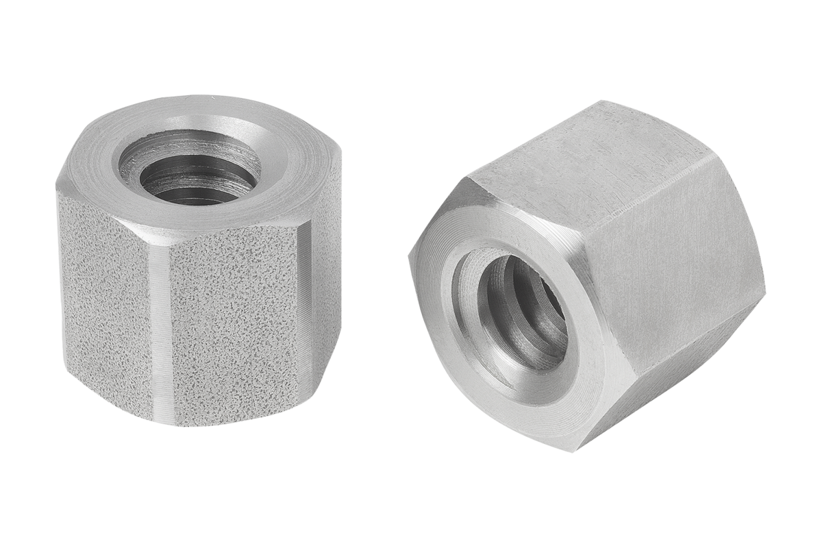 for adjustments during manual operation and as fastening nuts. Not advisable for use with motorised drives due to the steel/steel material pairing.