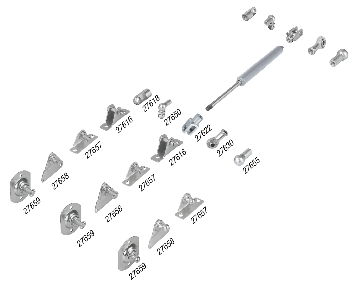 Gas springs are maintenance-free, self-contained systems that are filled with nitrogen under high pressure. There is also an internal defined quantity of oil for end position damping and lubrication purposes. The gas springs contain a check valve in the grub screw of the pressure pipe which enables the extension force to be subsequently reduced.