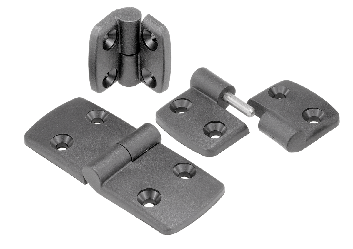 All hinges can be supplied on request with guide tabs for the slots of aluminium profiles (slots 6, 8 and 10). They facilitate assembly, secure the hinge against rotation and make it harder wearing.