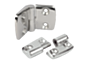 Hinge for panel elements and aluminium profiles, lift-off. Pin end closed. Screws countersunk, thus minimum dirt accumulation.