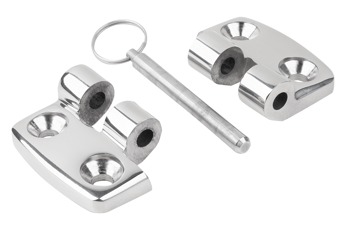 The hinge pins can be removed and refitted without tools enabling the hinge halves to be quickly separated and rejoined.