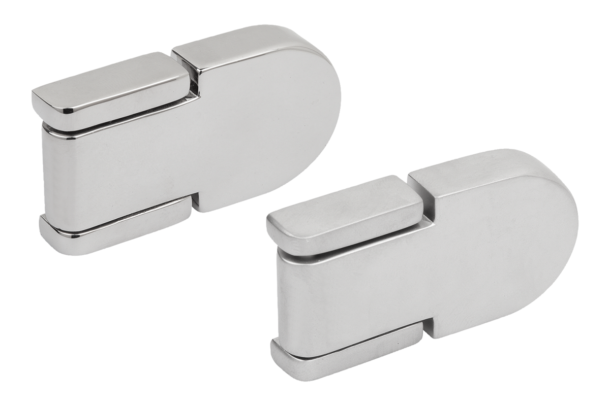 The hinges are available in polished or abrasive blasted versions.