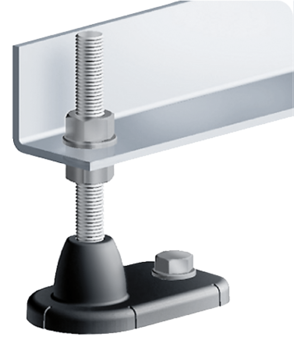 Stabile levelling foot which is ideally suited for conveyor units. With aligning markings to precisely position the ducks feet.